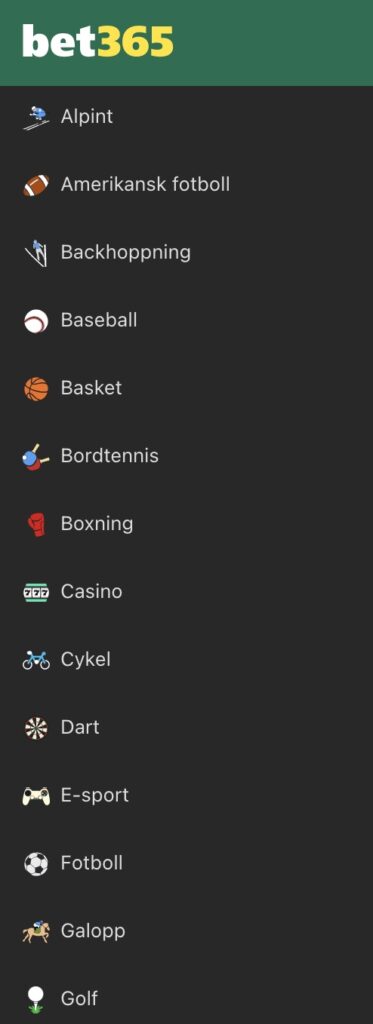 | Webbsida | https://casino.bet365.com/home/sv |