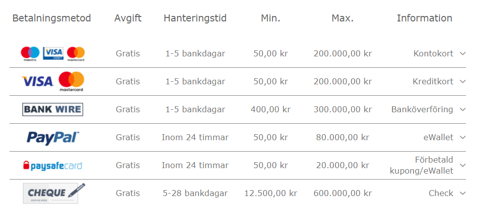 | Pengarna på kontot | Inom 24 h beroende på metod! |